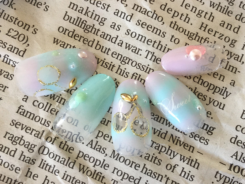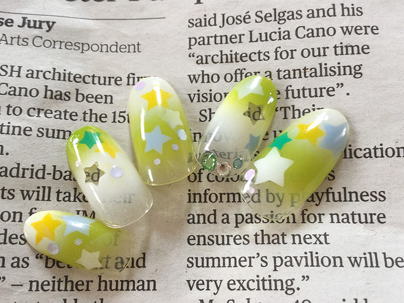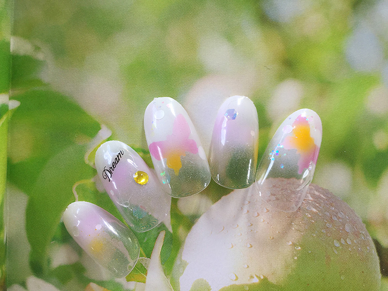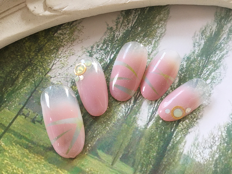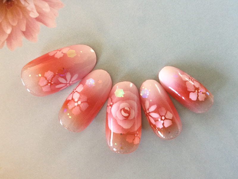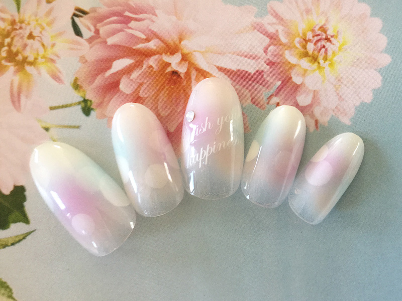 専用のジェルをエアブラシで吹いて繊細にデザインいたします。